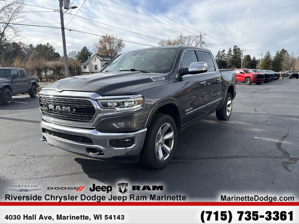 Leather Seats, Navigation, 4x4, Heated Driver Seat, Heated Rear Seat, Cooled Driver Seat, Back-Up Camera, Running Boards, Premium Sound System, Satellite Radio, iPod/MP3 Input, Onboard Communications System, Trailer Hitch, Aluminum Wheels, Remote Engine Start. MP3 Player, Keyless Entry, Privacy Glass, Child Safety Locks, Steering Wheel Controls. Ram Limited with Granite Crystal Metallic Clearcoat exterior and Black interior features a 8 Cylinder Engine with 305 HP at 6400 RPM*.